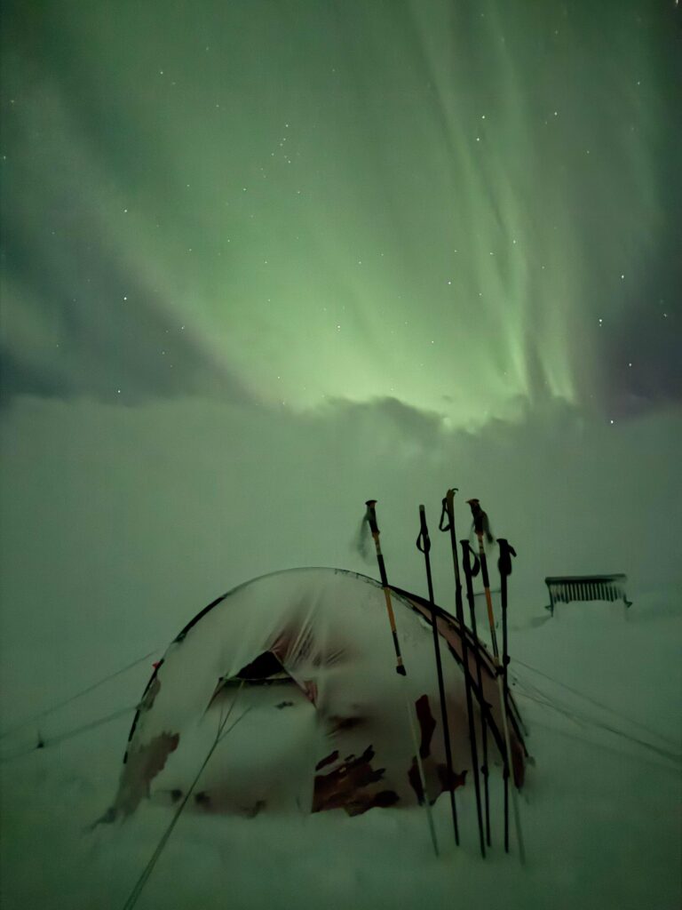 Nächtliche Bedürfnisse bieten die Chance zu einmaligen Erlebnissen mit phantastischem Nordlicht.